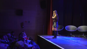 La encargada de presentar este acto fue la periodista del programa matinal ‘Arucitys’ de La Sexta, María Moya, quien tiene una gran implicación con la isla donde ha trabajado en medios de comunicación como Exit Punto Radio, Europa Press, TEF o IB3. En su presentación, María Moya quiso agradecer al Ayuntamiento de Sant Josep de sa Talaia la puesta en marcha de “estas maravillosas jornadas que sirven para recordar y sensibilizar a la población de Ibiza sobre la importancia de seguir luchando contra esta enfermedad” y también puso en valor nuestra labor en las Pitiusas y por impulsar esta obra de teatro y recordar a los asistentes, a través de la cultura, la importancia de realizarse esta prueba gratuita e indolora que puede salvar vidas.