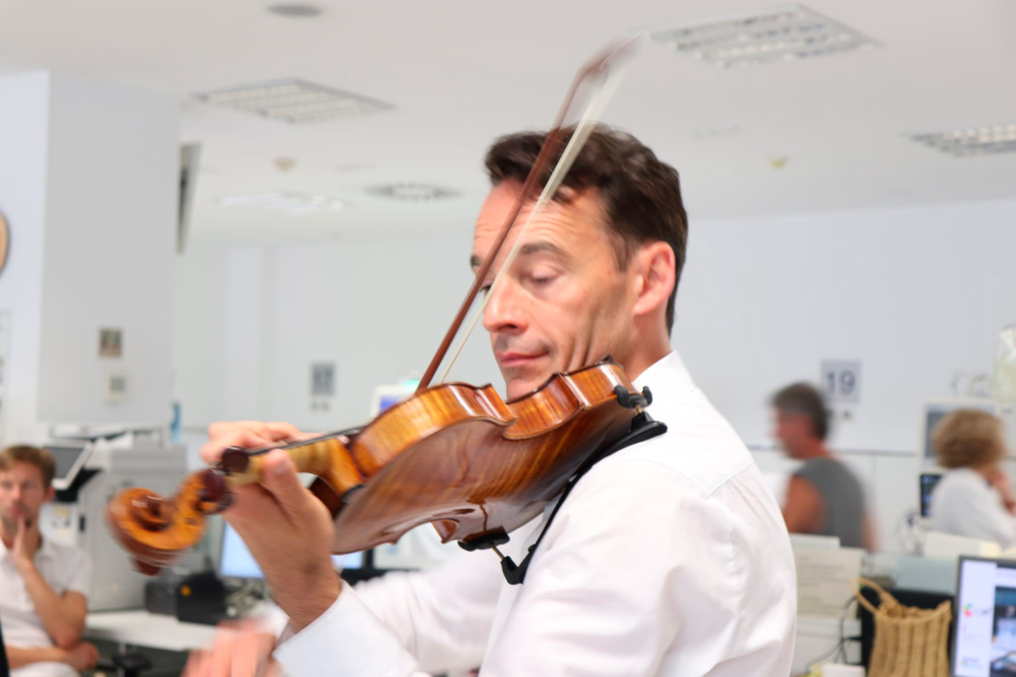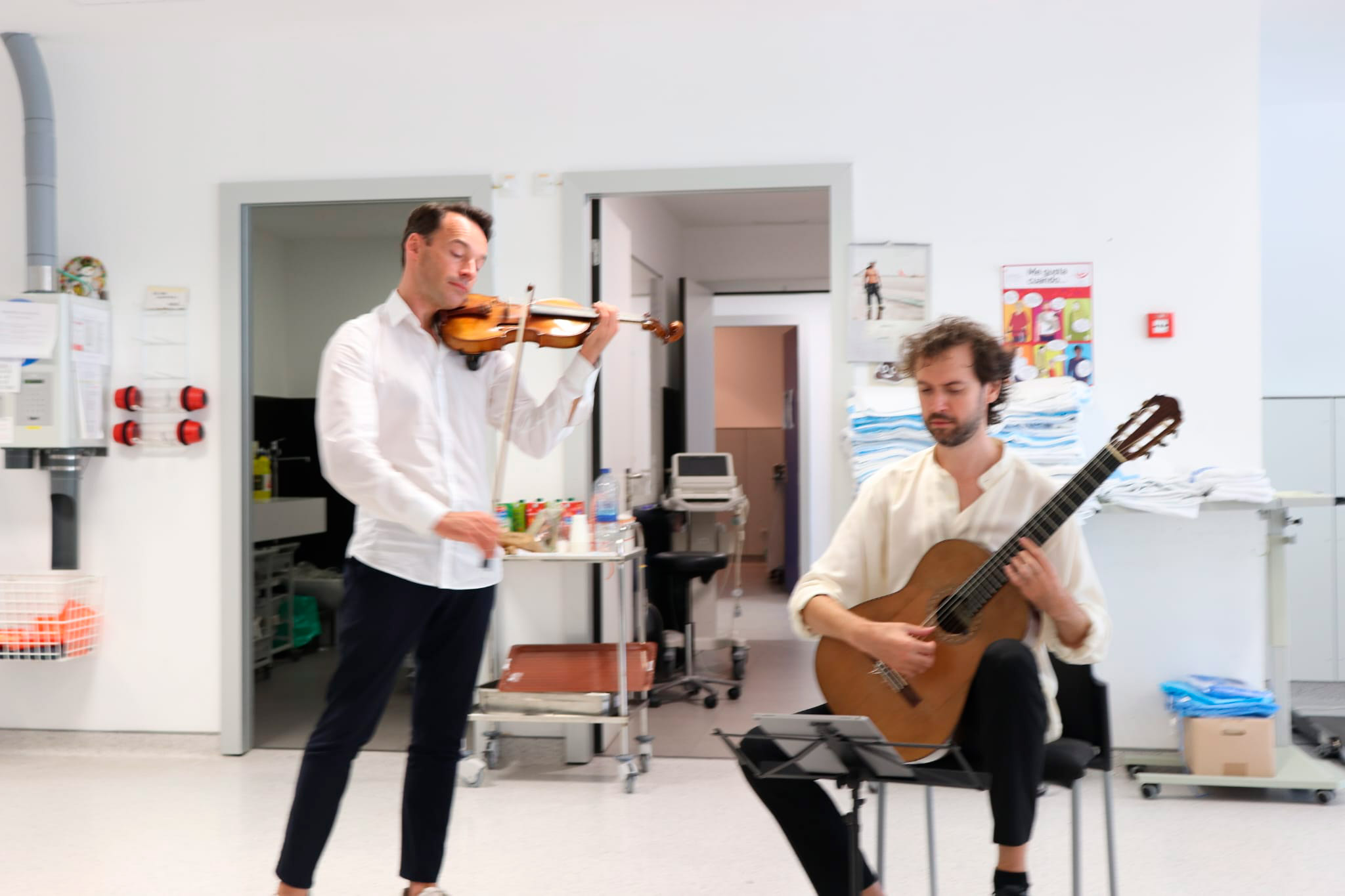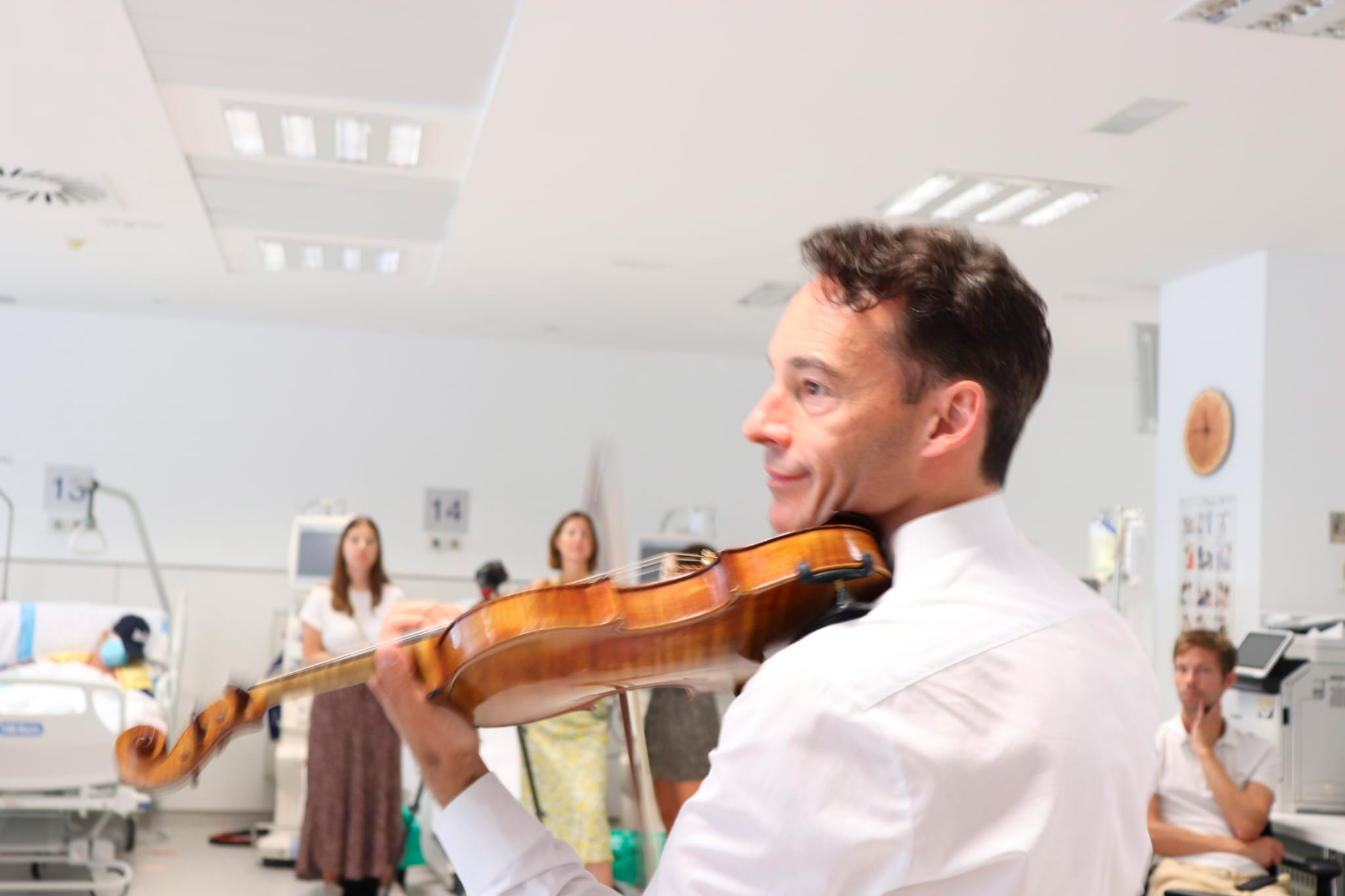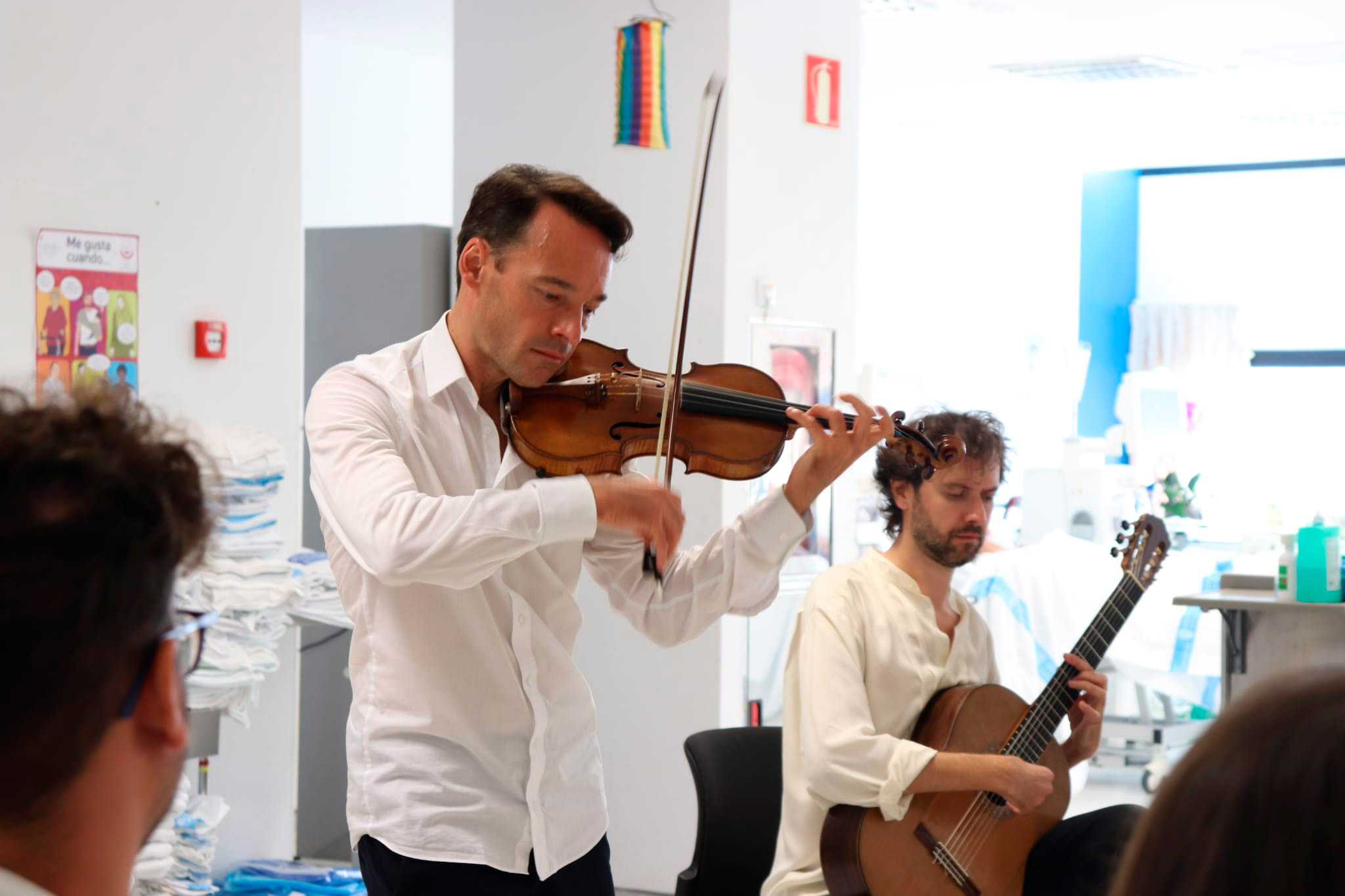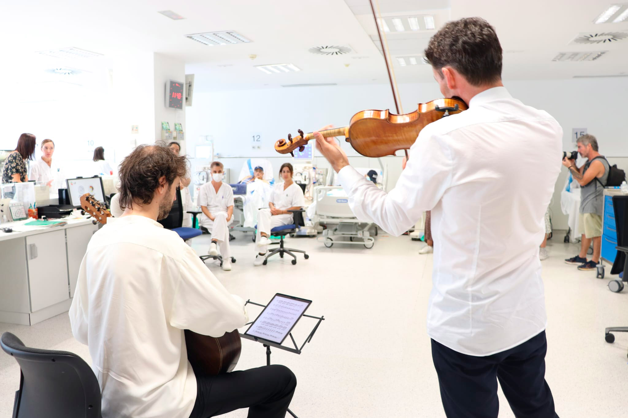 De esta manera, el profesor de violín en el «Leopold-Mozart-Zentrum» de la Universidad de Augsburgo y también director artístico del Concurso Internacional de Violín Leopold Mozart de Augsburgo, fundador y director artístico del Festival Internacional de Conciertos de Ibiza y, desde 2020, del festival de música Schwäbischer Frühling en Ochsenhausen (Alemania) ha amenizado con piezas clásicas las sesiones que hoy han recibido en el Hospital de día oncohematológico y en la Sala de hemodiálisis, más de medio centenar de personas, teniendo en cuenta pacientes y profesionales sanitarios.